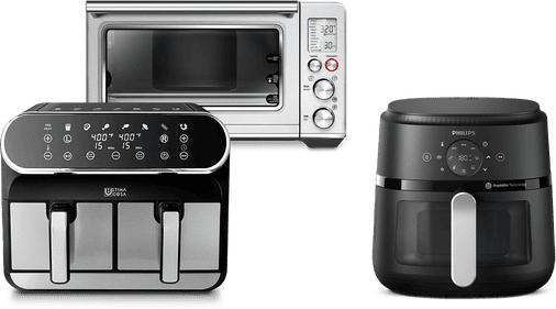 As for toaster ovens, be aware of how much space they take up on the counter. If you’re pressed for space, you may want to opt for a smaller toaster oven, or one that can fit in cabinet when not in use. If you plan on using the toaster oven to cook frozen pizza, you’ll need one with an interior space at least 12” deep.