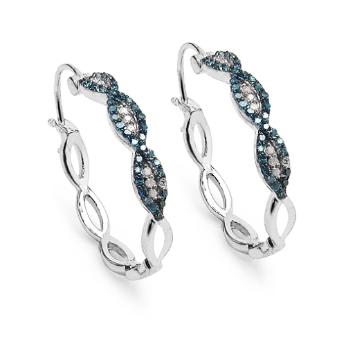 0.52 Carat Genuine Blue Diamond & White Diamond .925 Sterling Silver Earrings