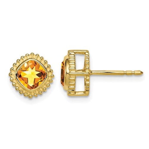 Classic button earrings crafted from polished 10 karat yellow gold with bezel-set cushion cut yellow citrines the birthstone of November 1.00 carats (ctw). Yellow Citrine is the birthstone of November.