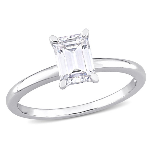 1.00 Carat (ctw) Lab-Created Emerald-Cut Moissanite Engagement Ring in Sterling Silver