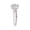This stunning halo ring is crafted in lustrous 10-karat white gold and features a stunning 1.00 carat lab created white sapphire at the centre and dazzling diamonds in a halo and halfway along the band. Enhanced with a striking finish this ring will make her gleam with happiness. Pair this ring with any ensemble for a polished look.
