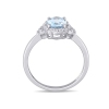 Bring color and sparkle to your look with this gorgeous oval halo ring. Crafted in lustrous 10 karat white gold, this comfortable halo ring features a central oval cut aquamarine gemstone (8x6mm) encased in a halo design created by 30 round prong set diamonds (H-I, I2-I3). Enhanced with a polished finish this pale blue ring features the March birthstone.