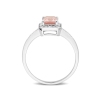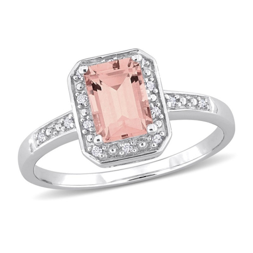 This ring features a 1.00 carat (ctw) octagon-cut morganite as the central gemstone, complemented by tiny diamond accents, all set in a sleek sterling silver band. The morganites unique octagon cut shape enhances its beauty and charm, making it a perfect choice for engagements and special occasions. The combination of morganite and diamond accents in sterling silver creates an exquisite and elegan