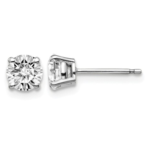 Crisp 14 karat white gold is crafted into solitaire stud earrings 4-prong set with sparkling white lab grown diamonds 1.00 Carat (ctw VS2-SI1, D-E-F) in these premium stunning diamond earrings. Lab-grown diamonds are man-made diamonds that are chemically, physically, and optically identical to diamonds originating from nature. Both have the same chemical composition and atomic structure, producing