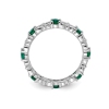 Polished sterling silver is the foundation for a stunning green peridot eternity wedding band featuring 8 brilliant round peridot gemstones 1.05 carats (ctw) total gem weight. This ring features the birthstone of August.