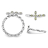 A stackable cross ring with natural green peridot gemstones the birthstone for August crafted from striking rhodium plated sleek sterling silver.