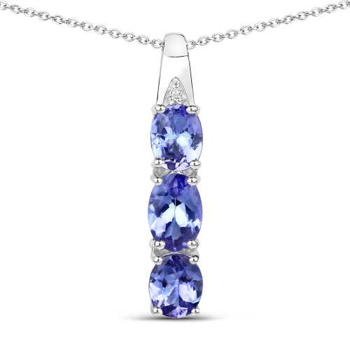 1.11 Carat Genuine Tanzanite and White Diamond .925 Sterling Silver Pendant