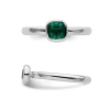 A classic sterling silver band with a cushion cut bezel-set lab-created green emerald gem at its center brings this simple and elegant ring to life featuring the birthstone of the month of May.