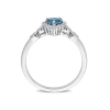 This charming promise ring features a 3/5 carat (ctw) heart-shaped London blue topaz, surrounded by a halo of sparkling diamond accents. Crafted in sleek sterling silver, it offers a romantic and elegant design, making it a meaningful symbol of love and commitment. Blue topaz is the featured birthstone of the month of December.