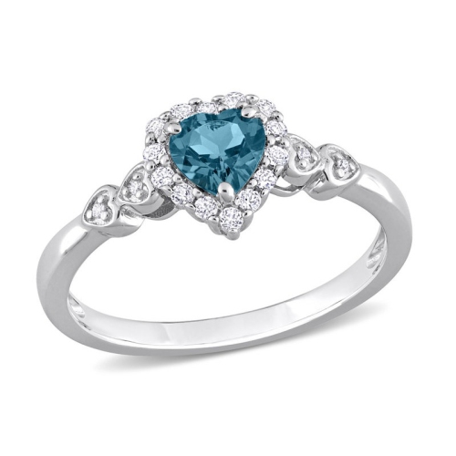 This charming promise ring features a 3/5 carat (ctw) heart-shaped London blue topaz, surrounded by a halo of sparkling diamond accents. Crafted in sleek sterling silver, it offers a romantic and elegant design, making it a meaningful symbol of love and commitment. Blue topaz is the featured birthstone of the month of December.