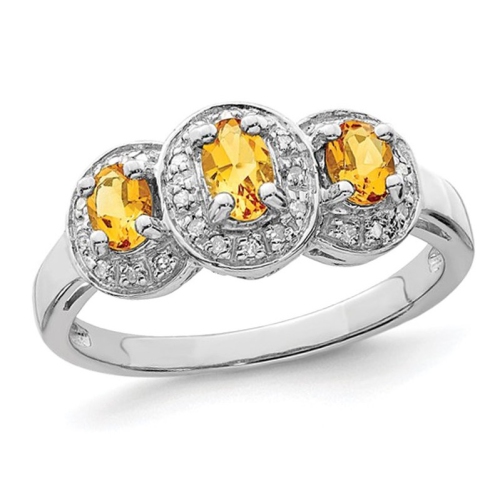 This three stone ring features oval cut citrines in a sleek sterling silver setting.