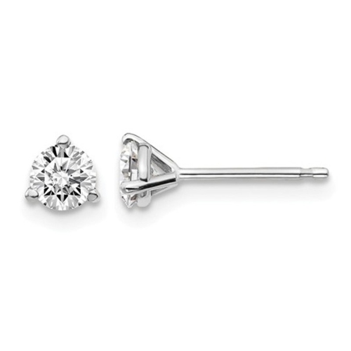 Crisp rhodium plated 14 karat white gold is crafted into solitaire stud earrings 3-prong set with sparkling white lab grown diamonds 1/2 Carat (ctw VS2-SI1, D-E-F) in these stunning earrings. Lab grown diamonds are man-made diamonds that are chemically, physically, and optically identical to diamonds originating from nature. Both have the same chemical composition and atomic structure, producing t
