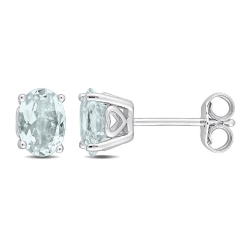 Everyone deserves to look and feel beautiful and you can too with these Aquamarine Stud Earrings. Mounted in lustrous sterling silver, they feature two oval-cut, 4 prong-set, aquamarine gemstones (7x5mm) studded in a classic heart detail basket setting. Polished to a brilliant shine, these opulent earrings are secured with butterfly closures. Add some color and vibrancy to any outfit with these ov