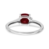 A single solitaire cushion cut lab created ruby 1.25 Carats (ctw) sits in a sterling silver rhodium plated setting in this classic July Birthstone gemstone ring.