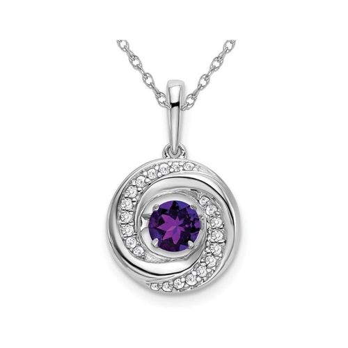 1/3 Carat (ctw) Circle Pendant Necklace in 14K White Gold with Chain and Diamonds available in Garnet, Amethyst, Peridot or Blue Topaz