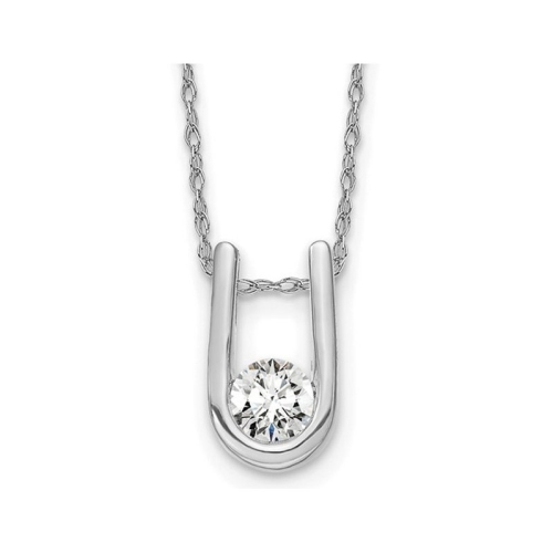 1/3 Carat (ctw H-I, I1-I2) Lab-Grown Diamond Solitaire U-Shape Pendant Necklace in 14K White Gold with Chain