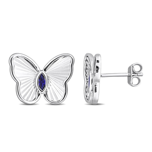 Add a touch of enchantment to your ensemble with these exquisite 1/4 carat (ctw) marquise-cut lab-created blue sapphire butterfly stud earrings, delicately crafted in sterling silver. The intricate butterfly design, adorned with vibrant marquise-cut created blue sapphires, exudes charm and sophistication. Perfect for elevating both casual and formal looks, these earrings are sure to catch the eye