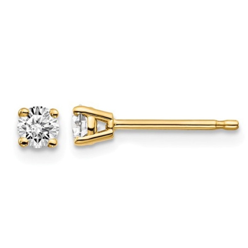 Shimmering polished 14 karat yellow gold is crafted into solitaire stud earrings 4-prong set with sparkling white lab grown diamonds 1/4 Carat (ctw VS2-SI1, D-E-F) in these stunning earrings. Lab grown diamonds are man-made diamonds that are chemically, physically, and optically identical to diamonds originating from nature. Both have the same chemical composition and atomic structure, producing t