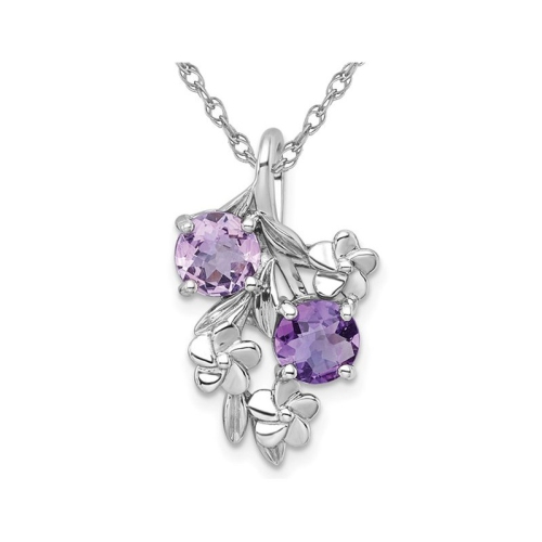 1.40 Carat (ctw) Amethyst and Rose De France Floral Pendant Necklace in Sterling Silver