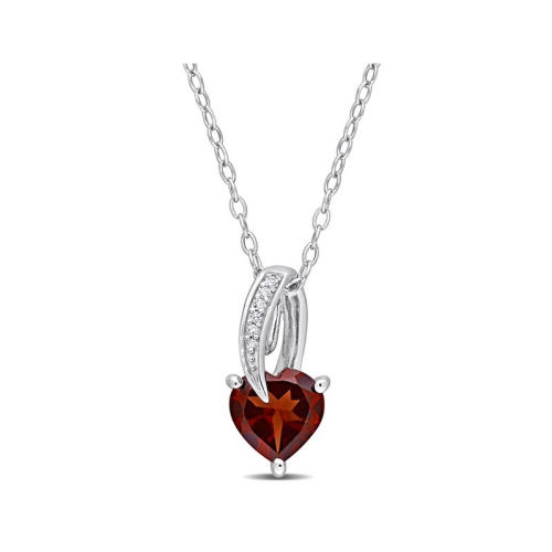 Get the perfect date night look with this appealing heart drop pendant with chain. Crafted in glissening sterling silver, this glamorous pendant features a heart-cut, prong-set garnet gemstone (7x7mm) and six round-cut, pave-set diamonds (G-H, I1-I2). Suspended on an 18-inch round cable chain and comfortably secured with a spring ring clasp, this dainty pendant is polished to a brilliant shine. A