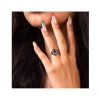 This glamorous 1.00 carat (ctw) diamond ring showcases a deep black chsion-cut diamond surrounded by a square halo of glittering white diamonds. This halo split shank diamond ring is set in crisp polished sterling silver with black rhodium and features 29 black and 68 white diamonds in a unique square halo design.