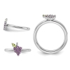 Beautiful round natural amethyst gemstones are the centerpiece of this grape inspired sterling silver ring featuring the birthstone for the month of February. This floral inspired design includes a beautiful green peridot leaf to completed the look.