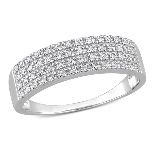 This delightful anniversary ring features 56 round white diamonds pave-set in sterling silver with 1/5 carat (ctw) of sizzling sparklers. This ring glimmers with a high polished finish and a simple and elegant design that can be worn both as a wedding band, fashion ring or anniversary ring.