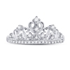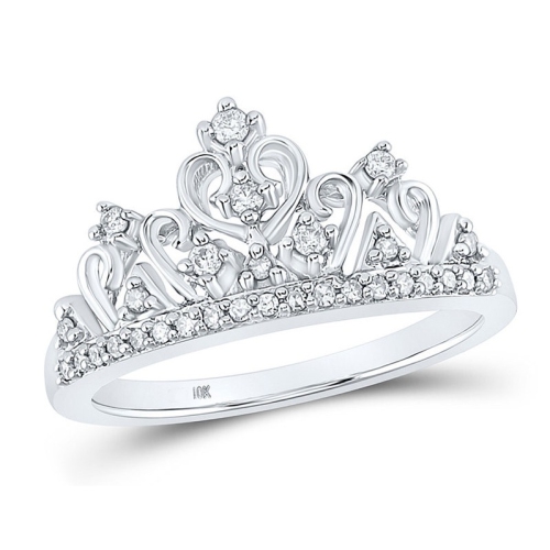Sparkling white diamonds 1/5 carat (ctw G-H, I2-I3) in a formation around a tiara inspired design are prong set into crisp gleaming 10 karat white gold. This is a simple and elegant ring she is sure to enjoy.