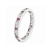 This stunning gemstone ring features alluring red lab created ruby stones and is exquisitely crafted from polished white sterling silver. Ten round, brilliant cut created ruby gemstones complete the design of this special band. Red ruby is the featured birthstone for the month of July.