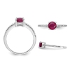 A single round ruby gemstone (1.43 carats (ctw)) is supported with sparkling brilliant white topaz (.12 carats (ctw)) prong set into a gleaming polished sterling silver in this July birthstone ring.