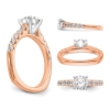This elegant classic style has a stunning high quality 1.00 carat (ctw) certified lab-grown brilliant round diamond (VS2, Color D-E-F) , set into a polished gleaming 14 karat rose gold foundation. This enagement diamond ring includes an IGI diamond certificate. This 4-prong set engagement ring offers a premium round diamond in a 14 karat rose pink gold mounting with 1/2 carats (ctw) of 10 supporti