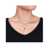 Get a vintage look with this brilliant peridot and diamond accent halo pendant with chain. Crafted in lustrous 14-karat yellow gold, this stunning necklace features one round cut, prong set peridot gemstone (7x7mm) and 15 round cut pave-set diamonds (H-I,I1-I2). Enhanced with a polished finish, this exquisite pendant is suspended on a 17-inch lightweight Singapore chain secured with a spring ring
