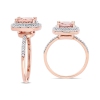 Beautifully crafted in 14k rose gold with a Polished FinishStone Type: Morganite; Color: Pink; 1.65 CTW; Quantity: 1; Cushion Cut; Cushion Shape; Dimensions: 7x7 mm; Natural; Prong SettingStone Type: Diamond; Color: H-I; Clarity: I2-I3; 0.09 CTW; Quantity: 30; Brilliant Cut; Round Shape; Natural; Prong SettingThis item ships in signature jewelry box packaging, ready for gift-giving with a classic, elegant look and feelThis Diamond Ring is the perfect gift for any birthday, anniversary, holidays, thank you, thinking of you, or for any reason at all