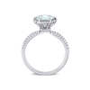 Enter a royal wedding reception with this opulent light aquamarine and diamond halo ring. Crafted in lustrous 14-karat white gold, this stunning floral inspired ring features a round, prong set aquamarine gemstone (8x8mm) and 74 round buttercup-set diamonds. With a polished finish this aqua twist ring featured the March bithstone.