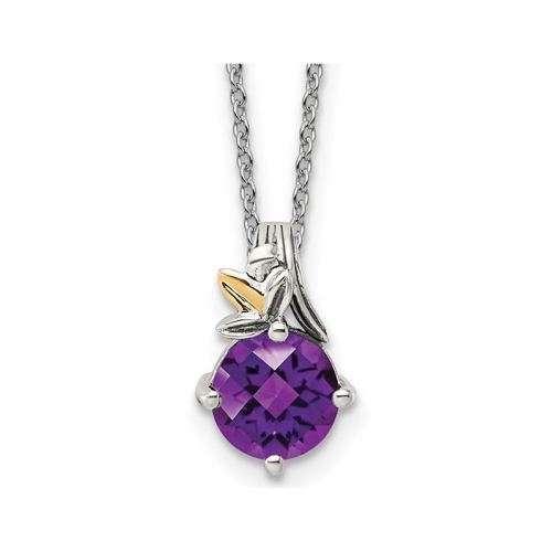 A beautiful single round solitaire purple amethyst gemstone 1.70 carats (ctw) sits in the warm embrace of sleek sterling silver in this leaf inspired charm pendant and matching silver chain included. Amethyst is the birthstone of the month of February.