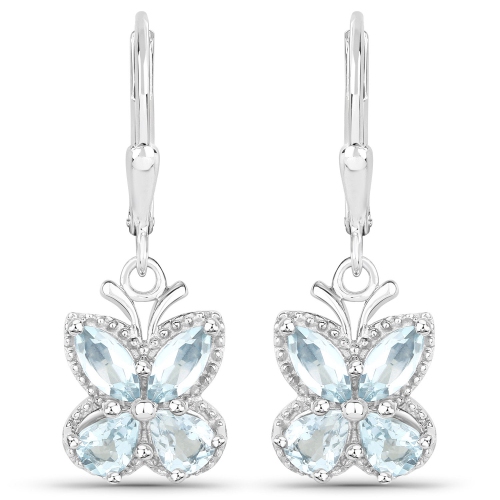 1.76 Carat Genuine Aquamarine .925 Sterling Silver Earrings