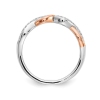 This twist criss-cross band diamond wedding ring is crafted from gleaming polished 10 karat white and rose pink gold as sparkling diamonds 1/8 carats (ctw) completes the look.