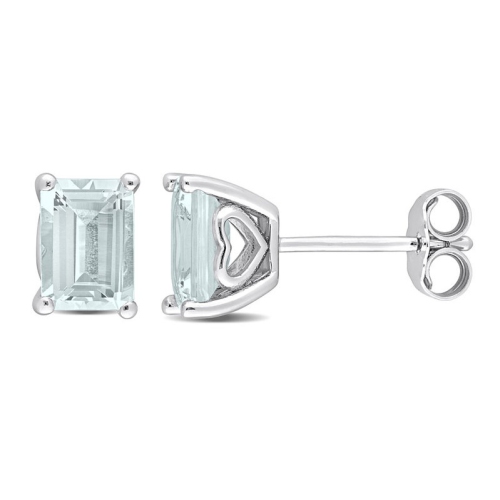Add sparkle to your look with these translucent clear light squamarine Stud Earrings. Mounted in sparkling sterling silver, they feature two emerald-cut, 4 prong-set, aquamarine gemstones (7x5mm) studded in a classic heart detail basket setting. Polished to a brilliant shine, these dazzling earrings fasten with butterfly closures. Create a buzz when you wear these stud earrings. Aquamarine is the