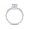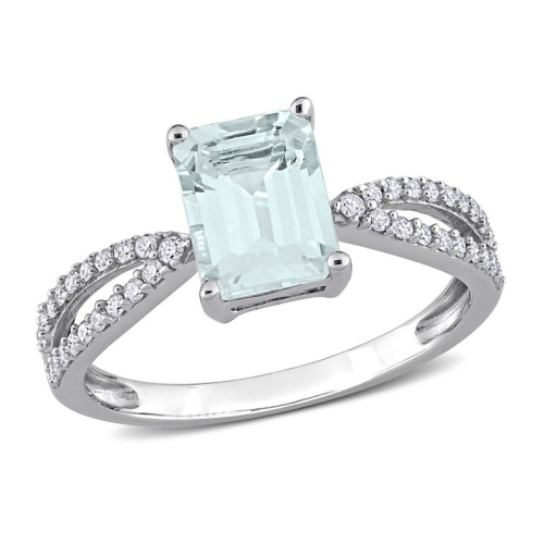 Say I love you with this ultra light aquamarine and diamond split shank ring. Crafted in lustrous 14 karat white gold, it features an octagon-cut aquamarine gemstone (8x6mm) at the center with 38 round diamonds (H-I, I2-I3) embellished in a split shank design. Polished to a brilliant shine, this radiant ring is the perfect addition to any jewelry collection. Gift this ring as a wonderful token of