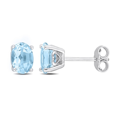 Complete your chic outfit with these Sky Blue Topaz Stud Earrings. Crafted in lustrous sterling silver, they feature two oval-cut, 4 prong-set, sky blue topaz gemstones (7x5mm) embellished in a heart detail basket setting. Polished to a brilliant shine, these lovely earrings secure with butterfly closures. These outstanding earrings are the perfect addition to any jewelry collection. They make a p