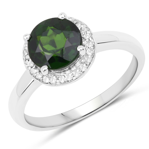 1.92 Carat Genuine Chrome Diopside and White Topaz .925 Sterling Silver Ring
