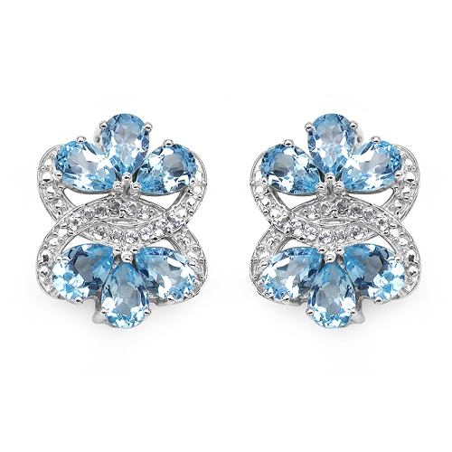 10.26 Carat Genuine Blue Topaz & White Topaz .925 Sterling Silver Earrings