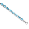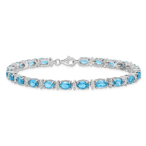 This bracelet features oval shaped gems of vibrant blue topaz and white topaz, the birthstone of December, set in rhodium plated sterling silver (10.50 carats, ctw). Creating a classic and colorful look, this birthstone bracelet is the perfect way to delight that special someone.