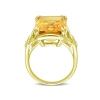 This captivating solitaire ring is crafted in lustrous yellow plated silver and features an octagon-cut, prong-set citrine (16x12mm) adorned with round-cut, two prong-set white topaz (1.8x1.8mm) gemstones. Enhanced with a polished finish, this remarkable ring adds a pop of class to every outfit. Citrine is the featured birthstone of the month of November.