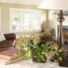 Hanging basket artificial assorted plants. Assorted leafy greens. Ceramic pot base with linked chain with hook