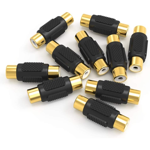 About this item•RCA Female to Female Connector,Gold-plated, Well packaged.•Product Size: 31 x 9mm/1.2" x 0.36’(L*D)•Clean up your wiring cables.Prevent from entanglement.It can Apply to Most pro audio and home audio equipment, such as amplifiers, mixing console, home theater devices, amplifiers or AV receivers•Package Content : 10 x RCA Connector•Product Service: If you have any questions or suggestions,please feel free to reach us,we will give you a reply in 24 hour.
