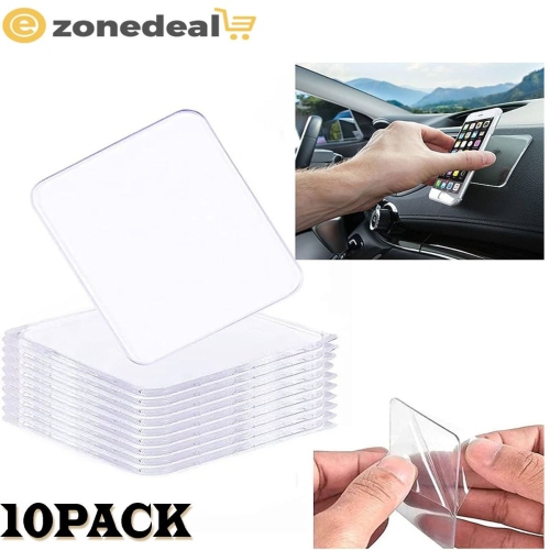 10 Pack Sticky Gel Pads Double Sided Sticker Tap for Wall, Kitchen/Office/Home/Car, Strong Heavy Duty Washable Patch Clear Removable Adhesive Pad