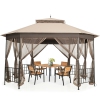 ● Large Space and Detailed Instruction: The 12' x 10' top offers a wide range of space to accommodate a group of people for social gathering. Besides, all parts and hardware in the package are clearly marked, so the patio gazebo can be assembled quickly and effortlessly by simply following the instruction. Canopy Shelter Double Top W/Netting Sidewalls