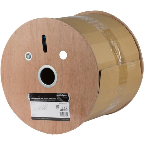 StarTech 1000ft Blue Bulk Cat6a Cable - Solid - CMR-Rated - Cat6a Ethernet Cable - 1000 ft Cat6a Patch Cable - Cat6a Network Cable - 1000 ft Category 6a Network Cable for Network Device - Bare Wire - Bare Wire - 1.25 GB/s - Patch Cable - Shielding - Blue - 1 Pack - TAA Compliant