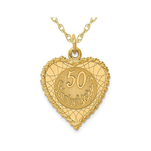 10K Yellow Gold 50th Anniversary Heart Charm Pendant Necklace with Chain